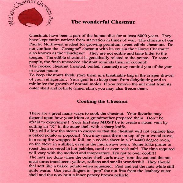 low maintainence and a potential cash income. Bobbie determined that Chestnuts were a
