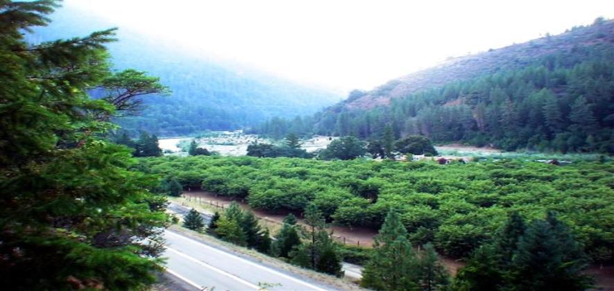 river water, all mineral rights and RE 4 zoning. The improvements on this parcel include a river-view home built in 1993, an ornamental fruit tree orchard, a 900 tree,20 year-old commercial chestnut orchard, a barn structure, a boat launch ramp and an antique cabin structure. This parcel is not currently served by the electric grid. The home structure is equipped with a solar-based alternative energy system and a Honda generator. The second parcel of appx 35 acres is located south of the State Hwy 96 on the north face of the timbered mountainside. It has good private road access and includes both flat and steep sections. This parcel includes multiple building sites with spectacular river-canyon views, merchantable timber, mineral rights and RE 4 zoning. The improvement to this parcel is a domestic water supply system consisting of developed springs, 2300 gallon storage tank and delivery piping down to the adjacent parcel. A hi-tension (69 kv) power line easement traverses this parcel. In addition, a telephone cable/pole line easement traverses the parcel. A privately owned telephone cable / pole line serves the improved parcel. Excellent telephone and DSL service is available. An abundant supply of firewood is available to be harvested annually. This parcel has multiple potential homesites with spectacular views of the river canyon.